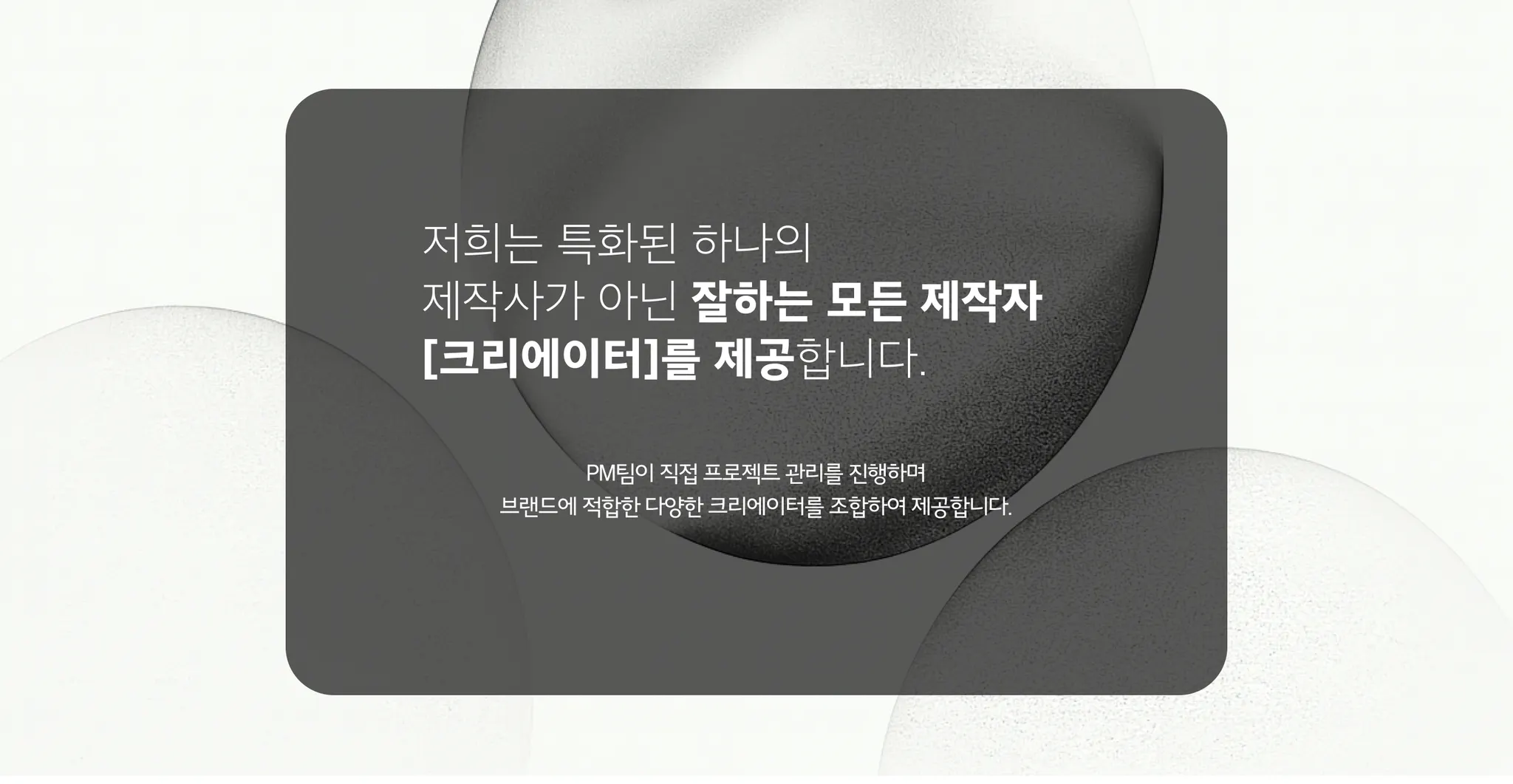 1. 브랜드의 콘텐츠에 맞는, 제작사가 아닌 제작자를 제공합니다.